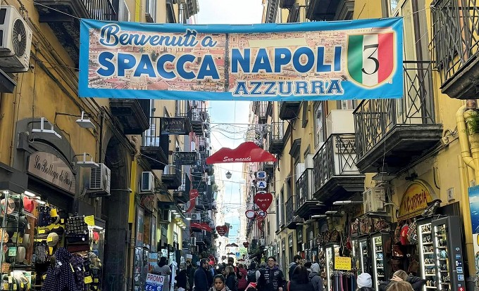 Ammireremo poi l’Obelisco dell’Immacolata, la Chiesa di Santa Chiara (esterno) e i Quartieri Spagnoli, tra vicoli vivaci, murales e quotidianità partenopea.