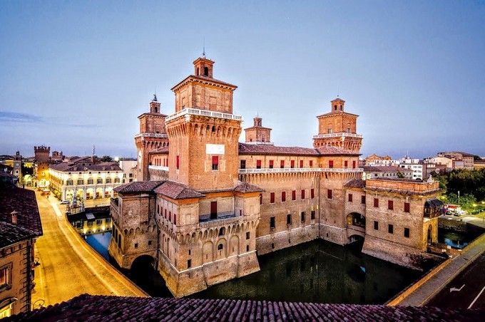 Il Castello Estense domina il cuore della città, simbolo di eleganza e progettualità artistica.