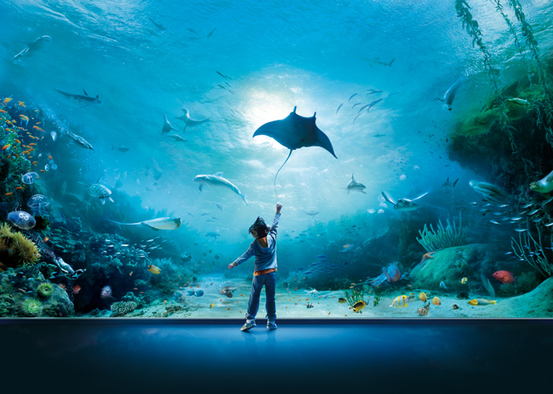 Grazie alle sue 71 vasche offre ai visitatori la possibilità di vivere un'avventura nei mari e negli ambienti acquatici più affascinanti del mondo: dai fondali del Mediterraneo alla Laguna del Madagascar, dalle scogliere coralline alle gelide acque antartiche, dalle foreste di mangrovie alla jungla dei colibrì. Un percorso espositivo che consente di conoscere da vicino i diversi ambienti acquatici, per imparare ad amarli e rispettarli.